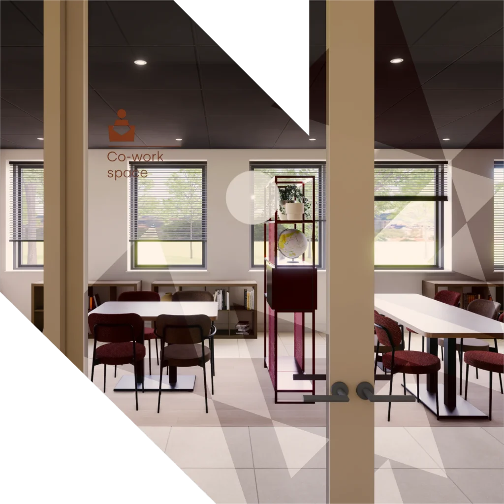 - Gebruik van inspirerende gemeenschappelijke ruimtes, waar je je eigen werkplek kunt creëren