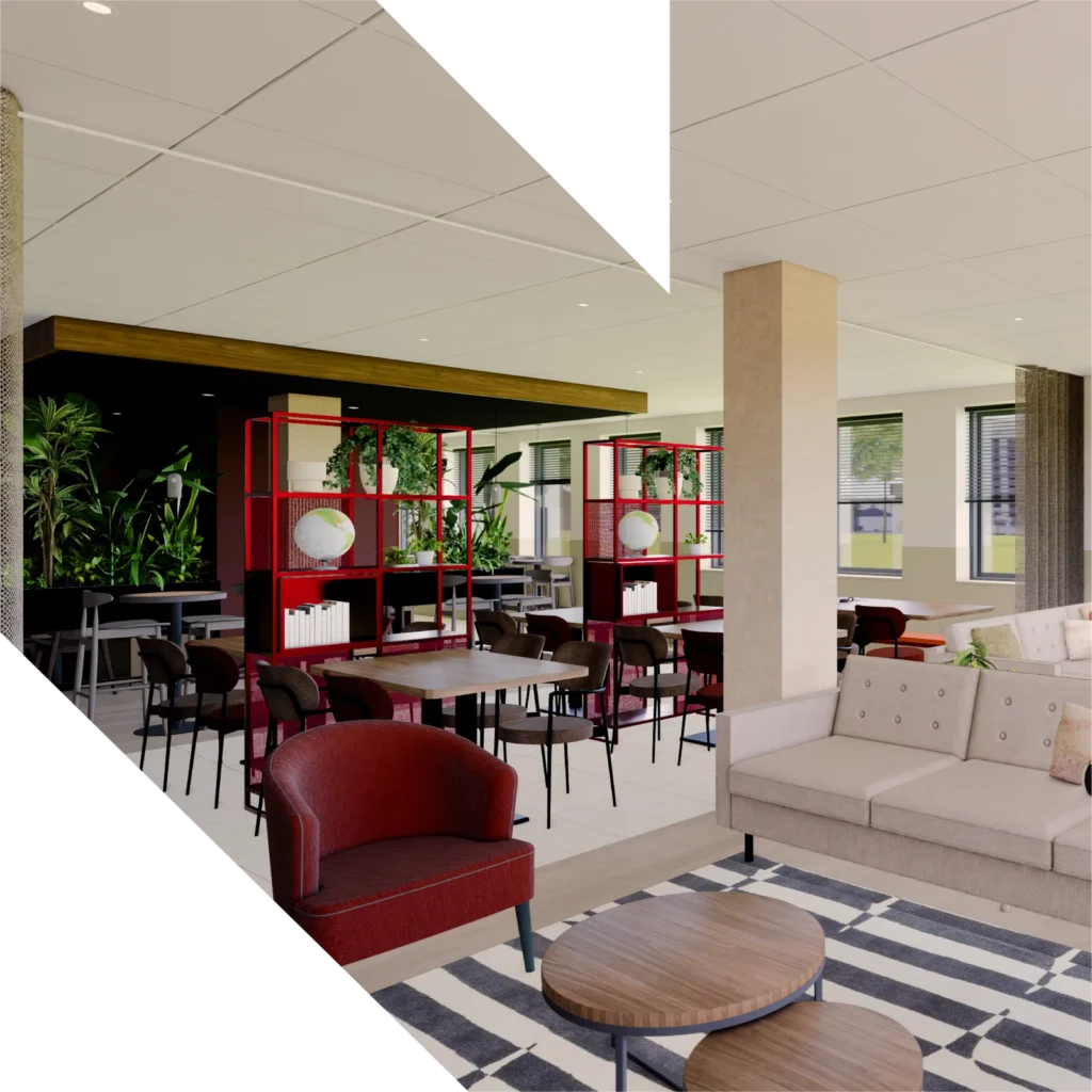 Op de plek waar straks Novum verrijst, was jarenlang het European Patent Office gevestigd – dé plek waar nieuwe uitvindingen werden onderzocht en beschermd. Een broedplaats van vernieuwing en vooruitgang. Die geschiedenis zetten we door in dit project. Novum – Latijn voor ‘iets nieuws’ – staat symbool voor kansen, ontwikkeling en een frisse start. In Novum komen mensen met verschillende culturele en persoonlijke achtergronden samen om te wonen, te leren en vooruit te gaan. Novum biedt daarmee méér dan een dak boven je hoofd: het is een stepping stone richting de toekomst. Een veilige, vertrouwde plek waar bewoners met verschillende culturen elkaar ontmoeten, ervaringen delen en samen een community bouwen. Novum is niet alleen een naam, het is een mindset. Wonen, ontmoeten en groeien – midden in de Randstad.