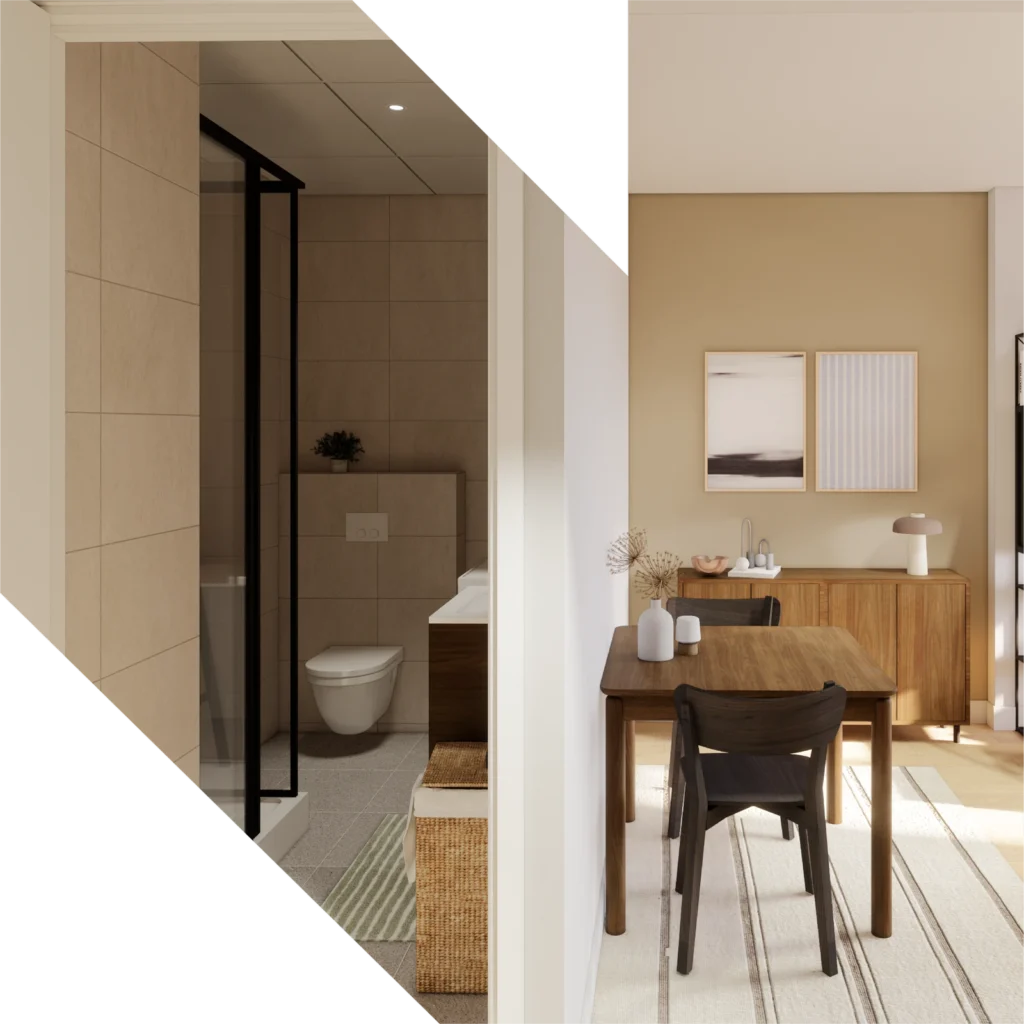 Ruimte, comfort en flexibiliteit: deze middenhuur woningen hebben het allemaal. Met een slimme indeling, eigen keuken en badkamer zijn ze volledig instapklaar. Je woont zelfstandig, maar profiteert van alle gedeelde voorzieningen van NOVUM zoals co-working, gym en de living rooms.